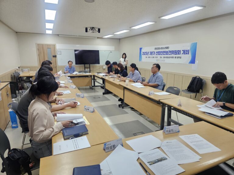(재)군포시청소년재단(대표이사 김덕희)은 2025년 3분기 산업안전보건위원회를 개최했다. 이번 회의에는 근로자 위원과 사용자 위원 등 총 14명이 참석하여 안전보건 관련 다양한 사항을 논의했다.