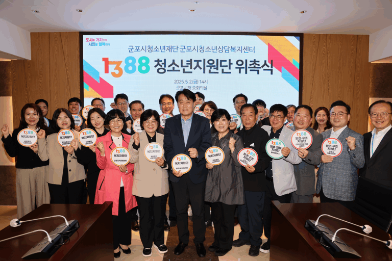 군포시(시장 하은호)는 2025년 5월 2일(금) 오후 2시 시청 중회의실에서 ‘1388청소년지원단 위촉식’을 개최했다. 하은호 시장은 신규 15개소, 연임 16개소 등 지원단 31개 기관 및 위원에게 위촉장을 전달했다.