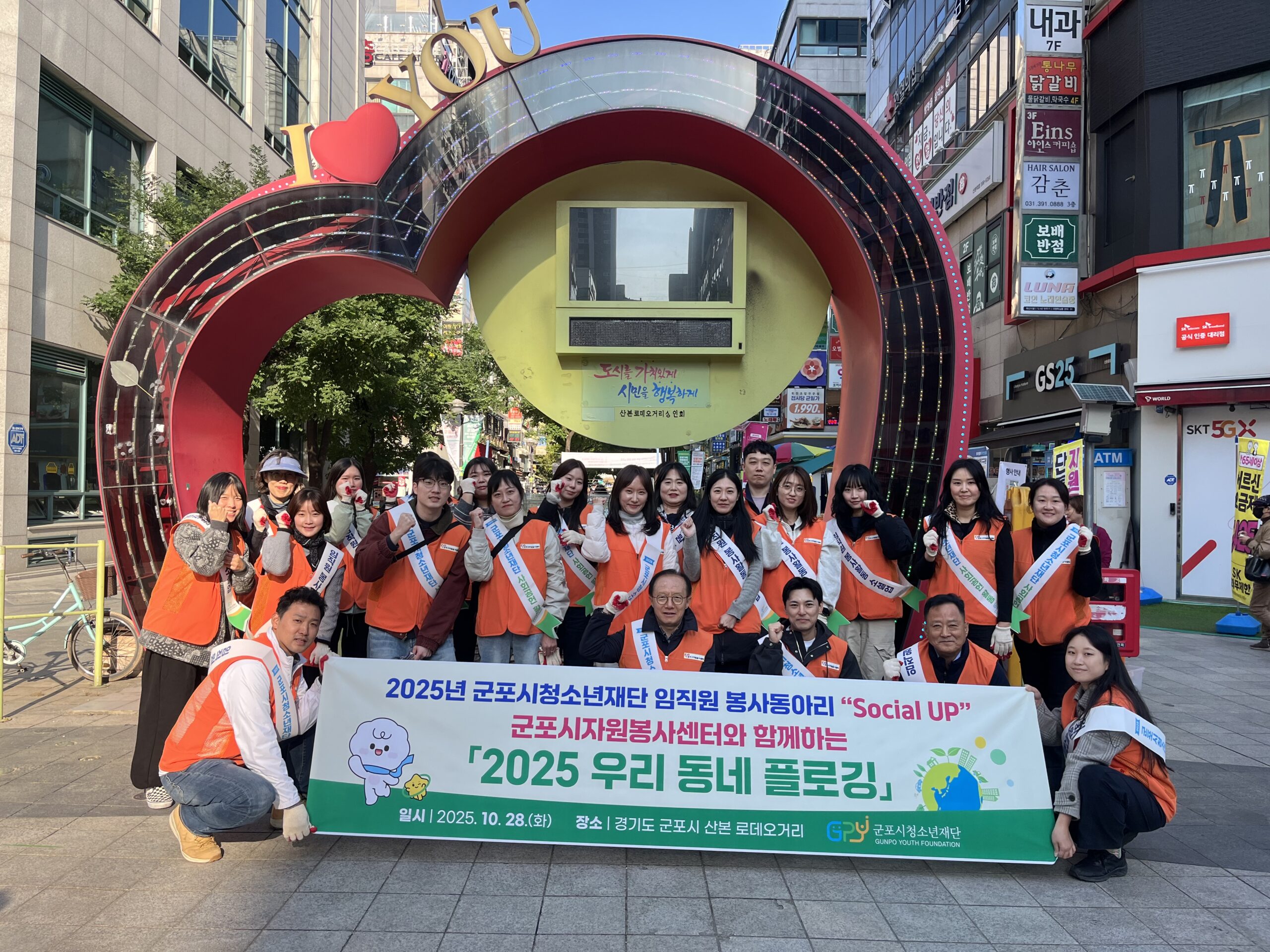 군포시청소년재단(대표이사 김덕희)은 지난 10월 28일(화), 재단 임직원봉사단 30여 명이 참여한 가운데 군포시자원봉사센터와 함께 ‘2025 우리동네 플로깅’ 봉사활동을 성공적으로 진행했다고 밝혔다. 이번 활동은 군포시자원봉사센터와의 협력을 통해 추진된 사회공헌 프로그램으로, 지역사회 환경...